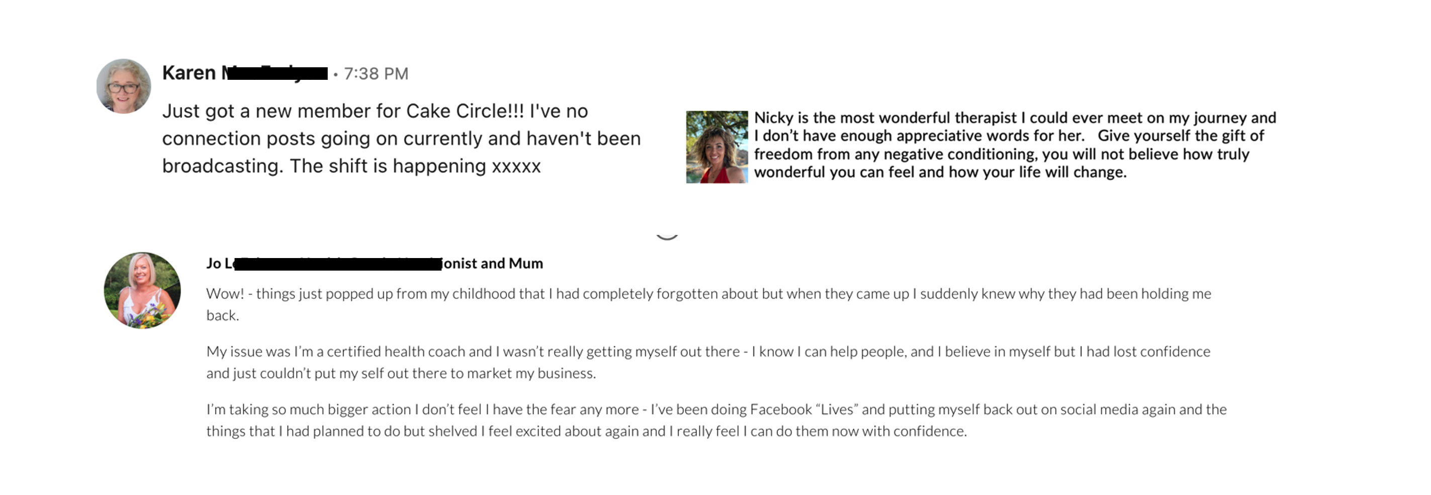 “Don't think - just do it! - Working with Nicky is a dream come true. I had deep rooted money mindset issues from my childhood and have been unable to resolve them for the past 20+ years and Nicky has done it in just two sessions - what's possible with this blows my mind”